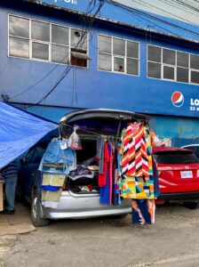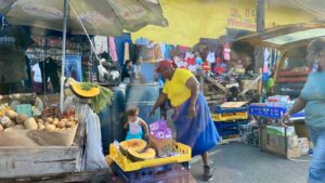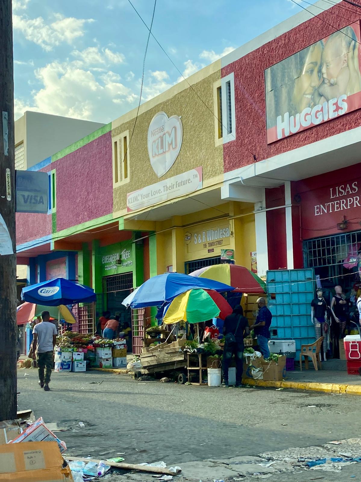 Loin du marché, chacun fait son petit commerce et apporte « à la porte » des habitants de quoi confectionner ou épicer le repas du quotidien. Dans leurs petits chariots, ils vendent des fruits et des légumes locaux, du pain à burger, des cannettes de soda, des petits gadgets pour faire plaisir aux enfants, plein de produits qui servent à consommation journalière. Les Jamaïcains n’ont globalement pas les moyens d’aller dans les supermarchés, les fruits & légumes y sont trois fois plus cher que dans la rue.