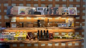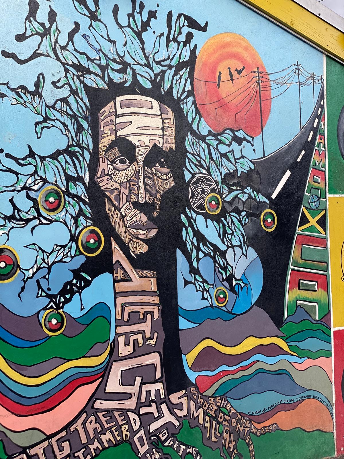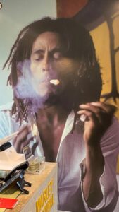 Aux murs de son musée : des photos de lui avec des tas de personnalités dans des pays très différents, pas mal en Afrique, des disques d’or et autres récompenses, des murs entiers dédiés à son officielle de femme (puisque le brave Bob a reconnu 11 enfants avec 7 nanas …) qui a eu plein de rôles différents en plus de son rôle d’épouse, elle était choriste dans leur groupe, gestionnaire de la maison et de « l’empire Marley ». Des fresques à son effigie par différents artistes, et puis dans l’arrière-cour, la boutique Marley : t-shirts, bonnets, mugs, affiches, et autres objets, et derrière la porte au fond à droite : toutes sortes de cônes, de pets en tout genre, de fleurs à consommer sous toutes leurs formes, chaque plante portant son petit nom : Ragga, Natural Mystic, Kaya, Uprising, Nice Time, Legend … et ses effets : faire rire, planer, améliorer la créativité, … mais, mais, mais ! « tout est déjà en toi, la ganja ne fait que le révéler et l’amplifier ! »
