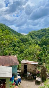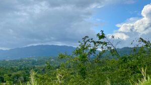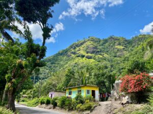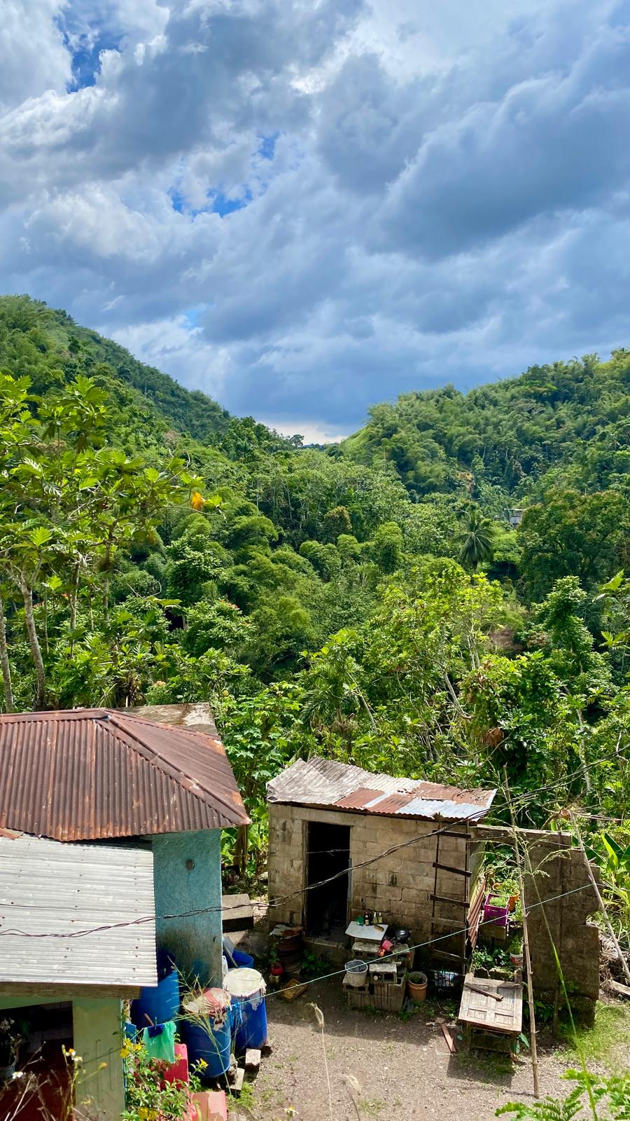 On est allé visiter un peu le nord de l’île, pour voir à quoi ressemble les côtes touristiques où parait-il les plages sont magnifiques et la vie belle et douce … on a passé 2 nuits à Ocho Rios, sans charme particulier. L’intérieur des terres est très vert, cultivé par endroit, éventré à d’autres par les mines de bauxite rouge, et ce qui est très particulier, c’est le relief : ce ne sont pas des collines ni des montagnes, le relief n’est pas très élevé, et il est très accidenté … c’est comme une succession de petits mornes, des mini pains de sucre verdoyants, collines à forte pente séparées par des petites et plus grandes rivières. Super joli. La ligne de crête ressemble à une longue ligne en dents de scie adoucies. Les villages dans les terres se résument à quelques maisons au bord de la route, plutôt en mauvais état, avec -semble-t-il- tout ce qu’il faut autour des terrains pour cultiver ce qu’on y mange.